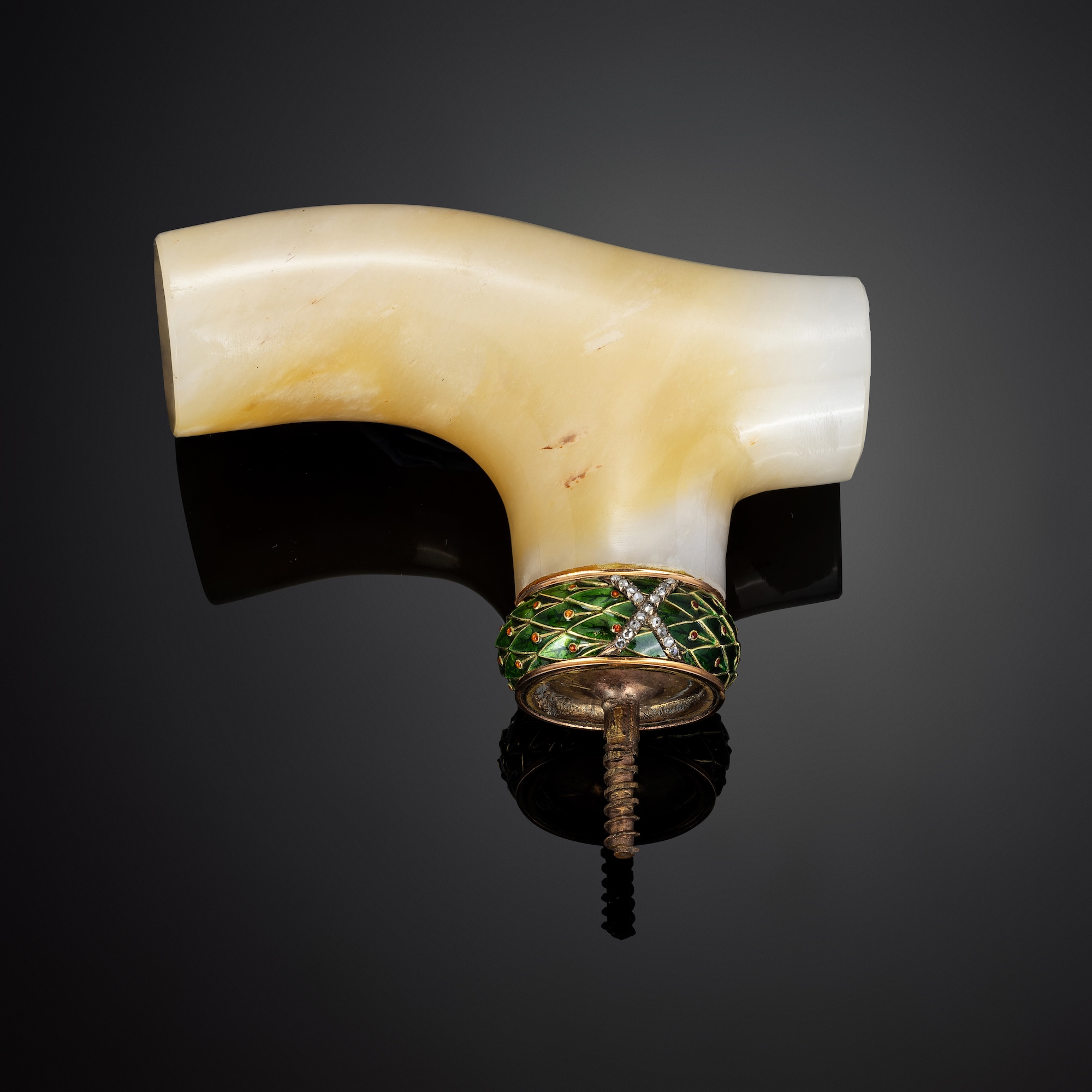 Fabergé Yellow Agate, Enamel and Diamond Cane Handle, circa 1901