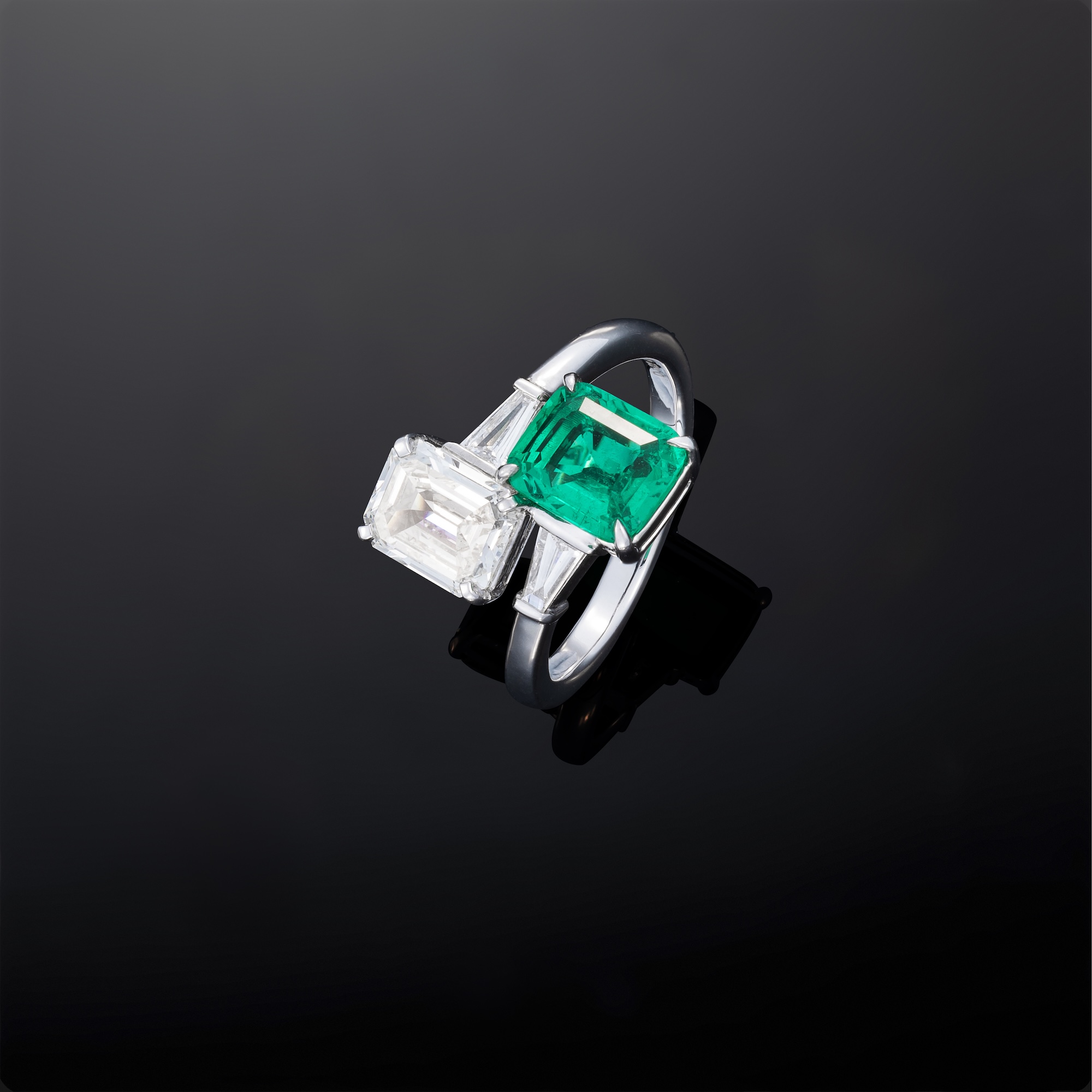 Platinum ring with diamond and Colombia emerald  white diamond GIA cert 1.22cts I VVS2, SSEF Emerald cert 1.487cts Colombia no oil